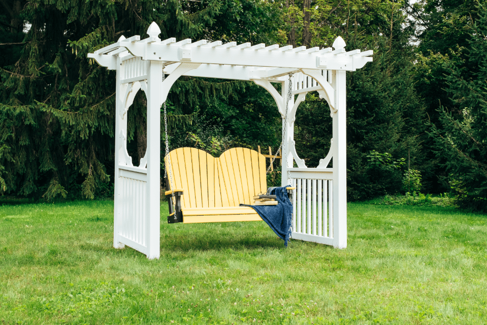 - Classic Adirondack Aesthetic: The swing features the classic Adirondack silhouette, characterized by its wide armrests and gently sloping back, providing a cozy and inviting seating experience. This timeless design enhances the charm of any patio, porch, or garden.
