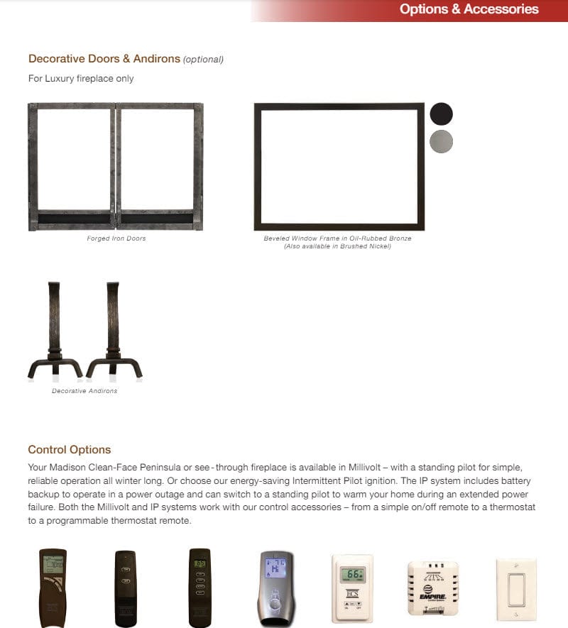- Dual Control Options: Millivolt (no power) or IPI (push-button start)
