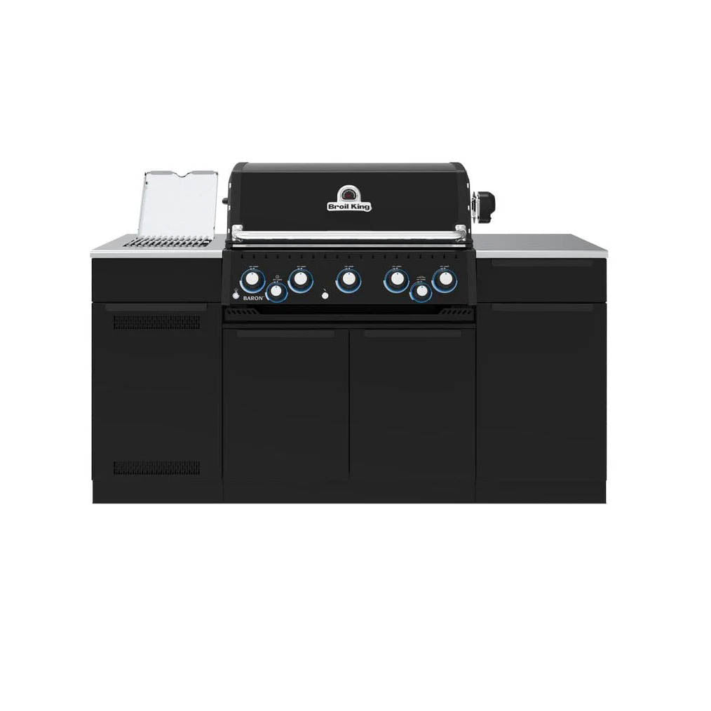 A Premium outdoor kitchen built for chefs who demand performance and style. Offering a generous 570 sq. in. cooking area powered by 5 Dual-Tube™ burners, this unit ensures superior heat distribution and searing results. Features like illuminated control knobs, soft-close drawers, stainless worktops, and pull-out trash compartments make the Baron Shadow a complete, chef-ready grilling station.