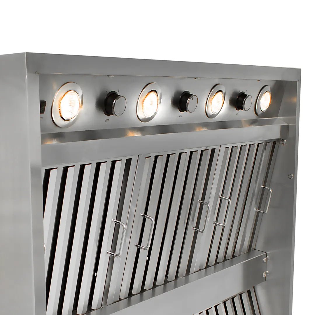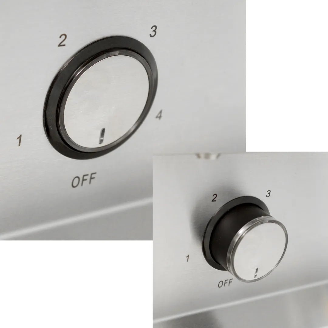 Engineered for serious outdoor chefs, this high-performance hood features a deep 36-inch canopy and a powerful 1000 CFM 4-speed motor that efficiently removes heavy smoke, odors, and airborne grease. The increased depth captures more smoke, especially when grill lids are open, allowing for higher installation height and an unobstructed cooking view. Four adjustable halogen lights brighten the grill area, perfect for evening barbecues. Retractable, grease-free controls with illuminated displays add both style and practicality. Built to last and backed by Blaze’s quality, this vent hood is an essential upgrade for any luxury outdoor kitchen.