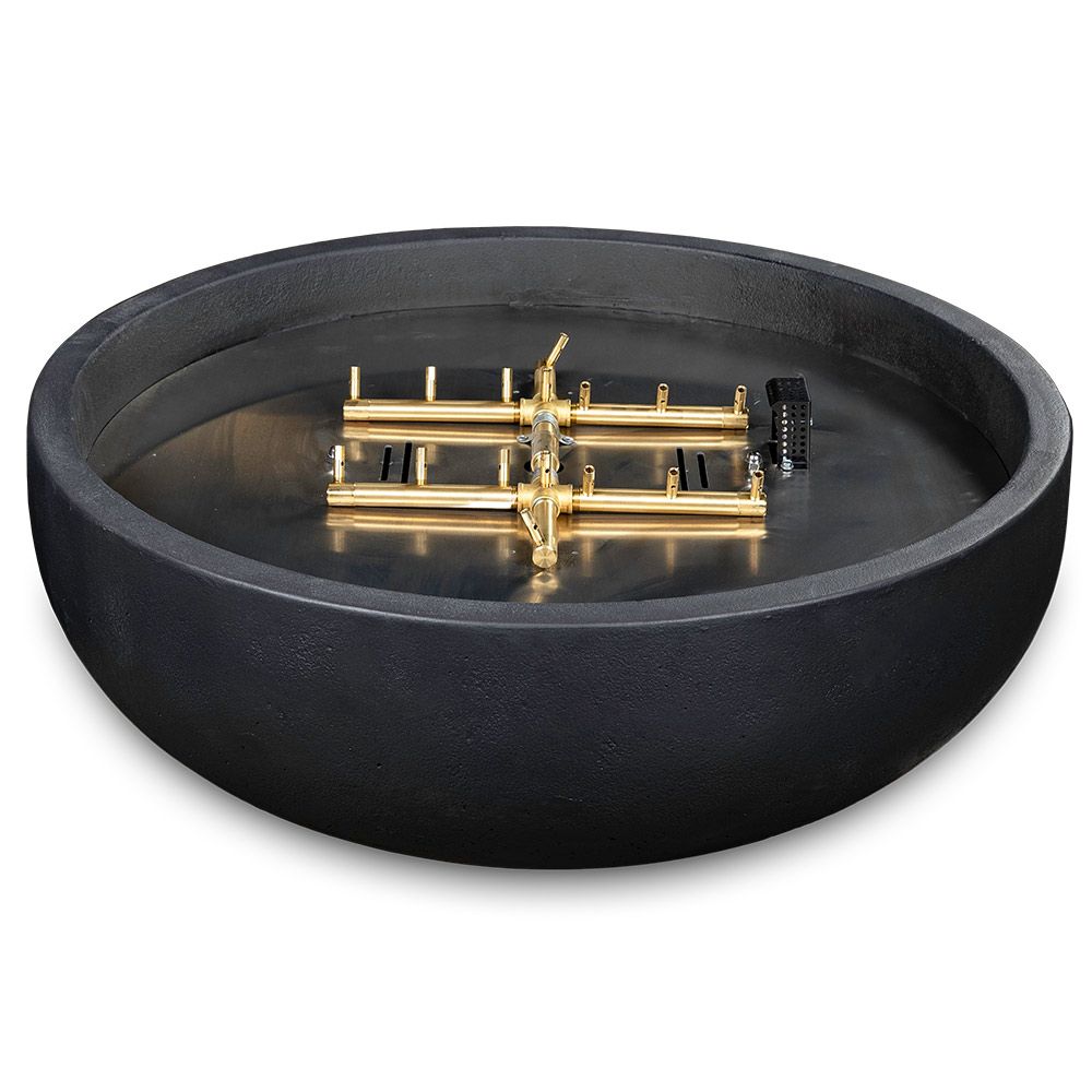 Handcrafted in the USA, this fire bowl features a rustic phantom finish that complements modern and classic exteriors alike. Built with ultra-durable GFRC and reinforced by a steel frame, it’s engineered to endure extreme weather and heat. The premium brass burner delivers mesmerizing flames, with heat outputs of up to 120,000 BTUs for propane and 85,000 BTUs for natural gas. Designed for versatility and ease, each unit includes a protective cover, lava rock, leveling feet, and a lifting strap, along with compatible hoses and regulators. Available in both natural gas and propane models.