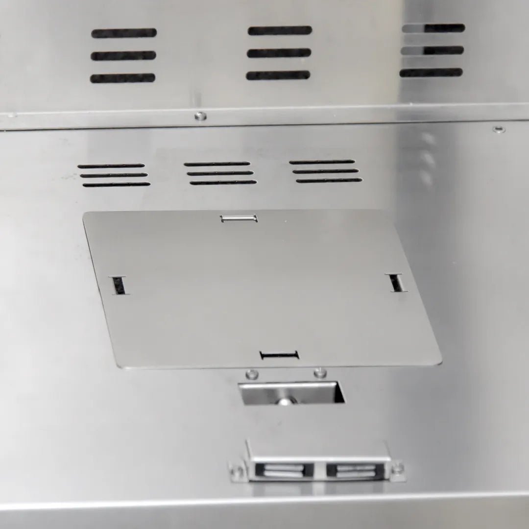 Designed to cover the propane tank hole at the bottom of Blaze grill carts, this stainless steel accessory enhances the storage area by providing a smooth, solid surface. Crafted from durable 304 stainless steel, the cover resists rust and wear in all weather conditions, seamlessly integrating into your Blaze setup. Compatible with all Blaze grills, it's the ideal finishing touch when the LP tank cutout is no longer needed, improving aesthetics and usability.