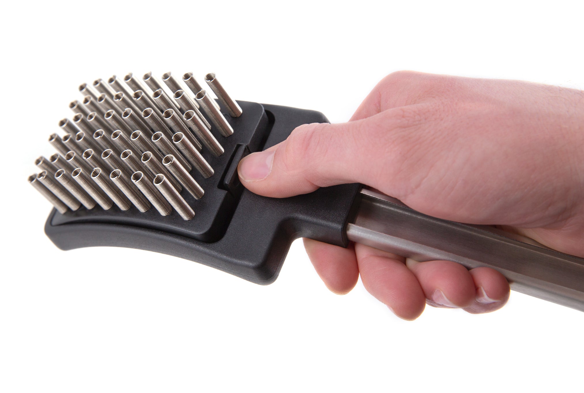 Built with independent stainless steel coil springs, this brush flexes to conform to grill grates, lifting stuck-on food with every pass. Its innovative spring design reduces scraping damage while delivering powerful cleaning. The durable construction is paired with an ergonomic handle and includes a replacement head for extended product life—making it the smart choice for everyday grilling maintenance.