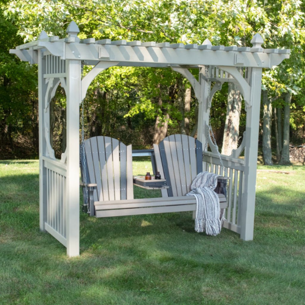 - Versatile Design: The LuxCraft Classic Vinyl Swing Stand provides a sturdy and stylish framework that allows you to customize your outdoor retreat. Train morning glories to weave through the structure or showcase your favorite hanging baskets in the side openings for a touch of natural beauty.