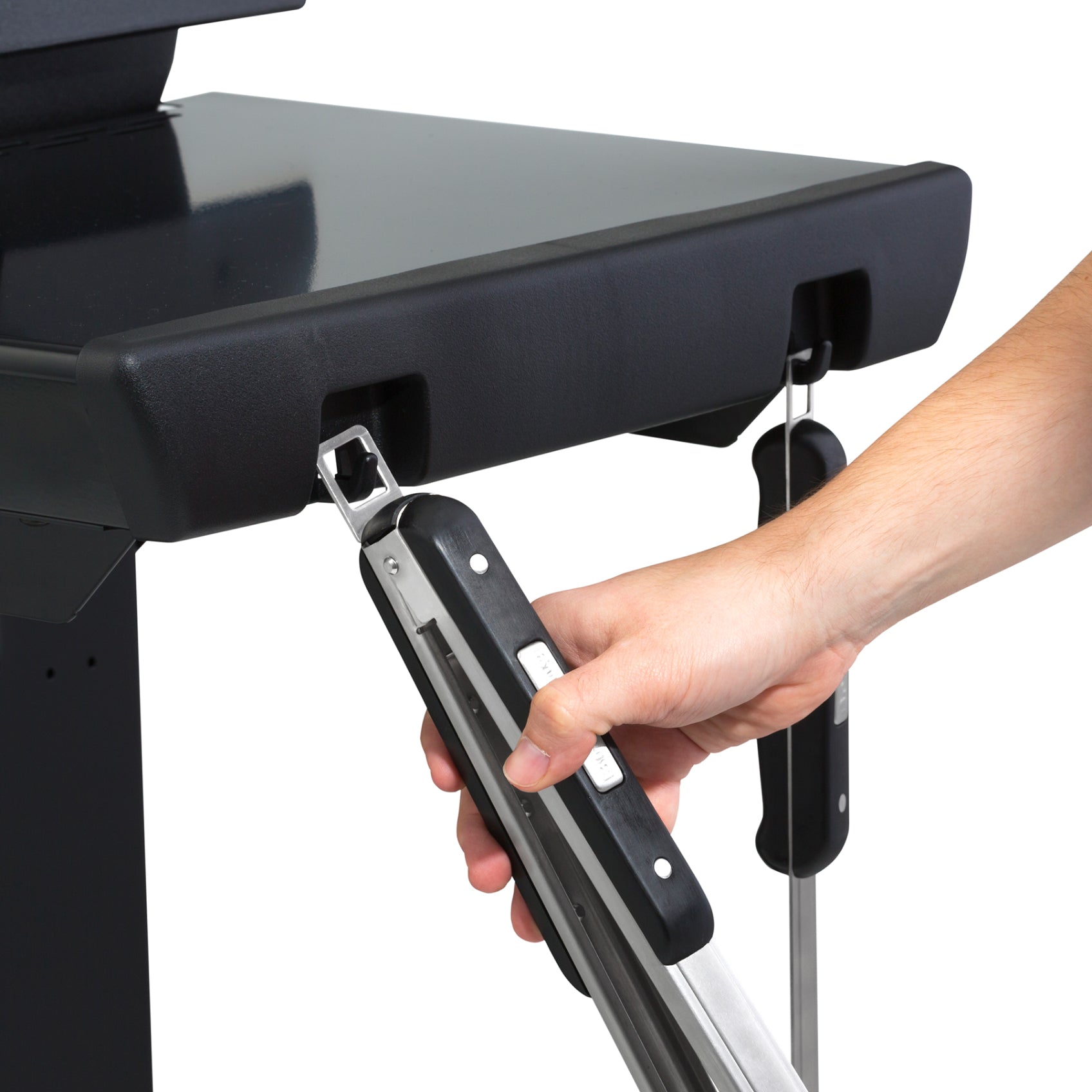 - Enclosed Cabinet Base – Neatly stores propane tank or tools.