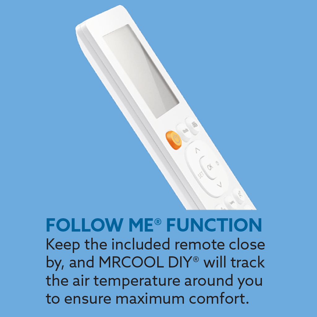 • Innovative Comfort Features: The system's wireless remote includes the Follow Me function, which adjusts the airflow temperature based on the remote's location, ensuring consistent comfort throughout the room. Additionally, the Dry Mode acts as a dehumidifier, effectively reducing humidity levels by removing excess condensation.