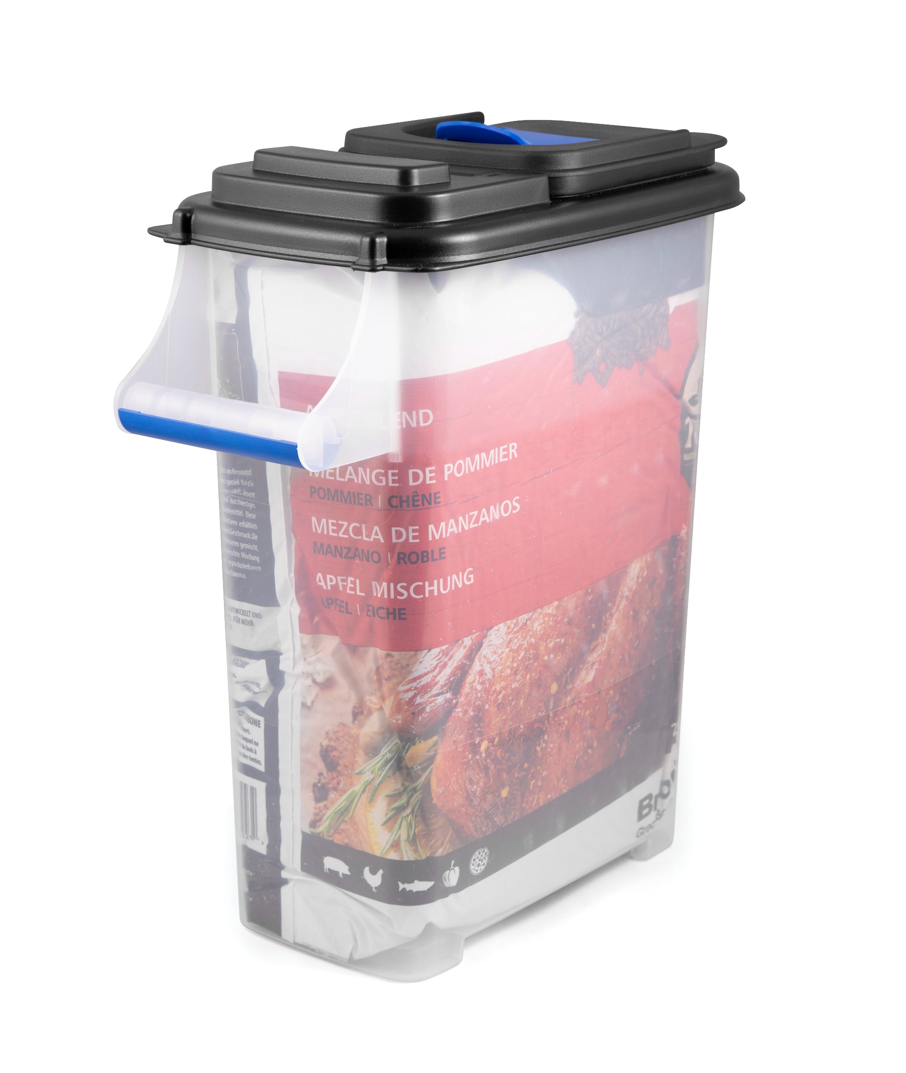 Featuring a heavy-duty comfortable handle and a retractable spout, this bin simplifies the process of pouring or scooping pellets. Designed to hold exactly one 20 lb bag of Broil King® pellet fuel, it fits conveniently under your pellet grill hopper for easy collection. Whether you're topping up your grill or storing extra fuel, this container ensures clean, efficient handling every time.