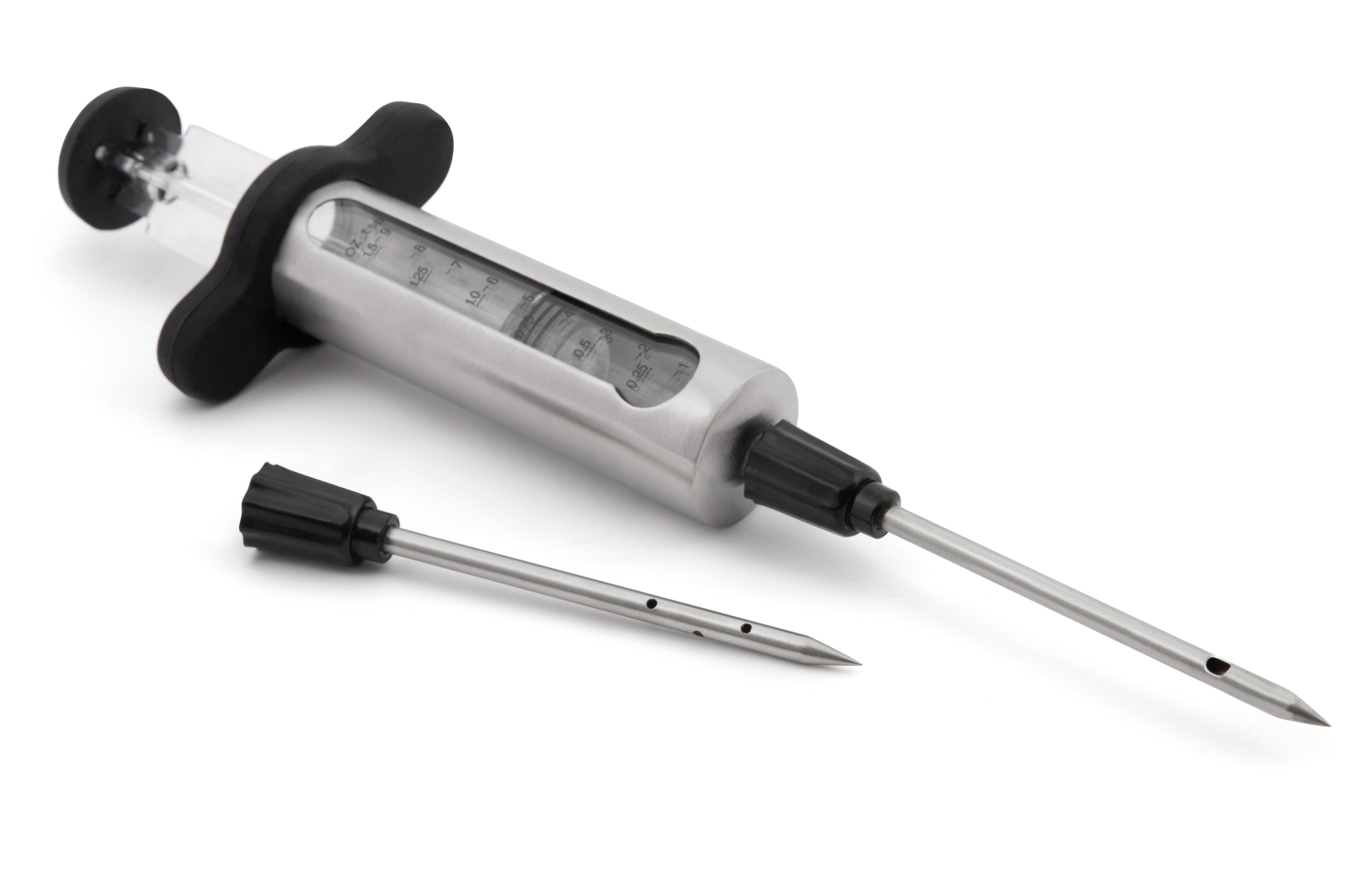 Designed for both amateur and professional grillers, this high-quality injector comes equipped with two needle tips — one large and one small — making it perfect for both thick and thin marinades. The clear window with graduated measurements allows for precise control of the amount of marinade being injected, ensuring consistent flavor throughout. Disassembles quickly for effortless cleaning, this durable and practical grilling accessory is a must-have for anyone looking to achieve juicy, flavorful results with ease.