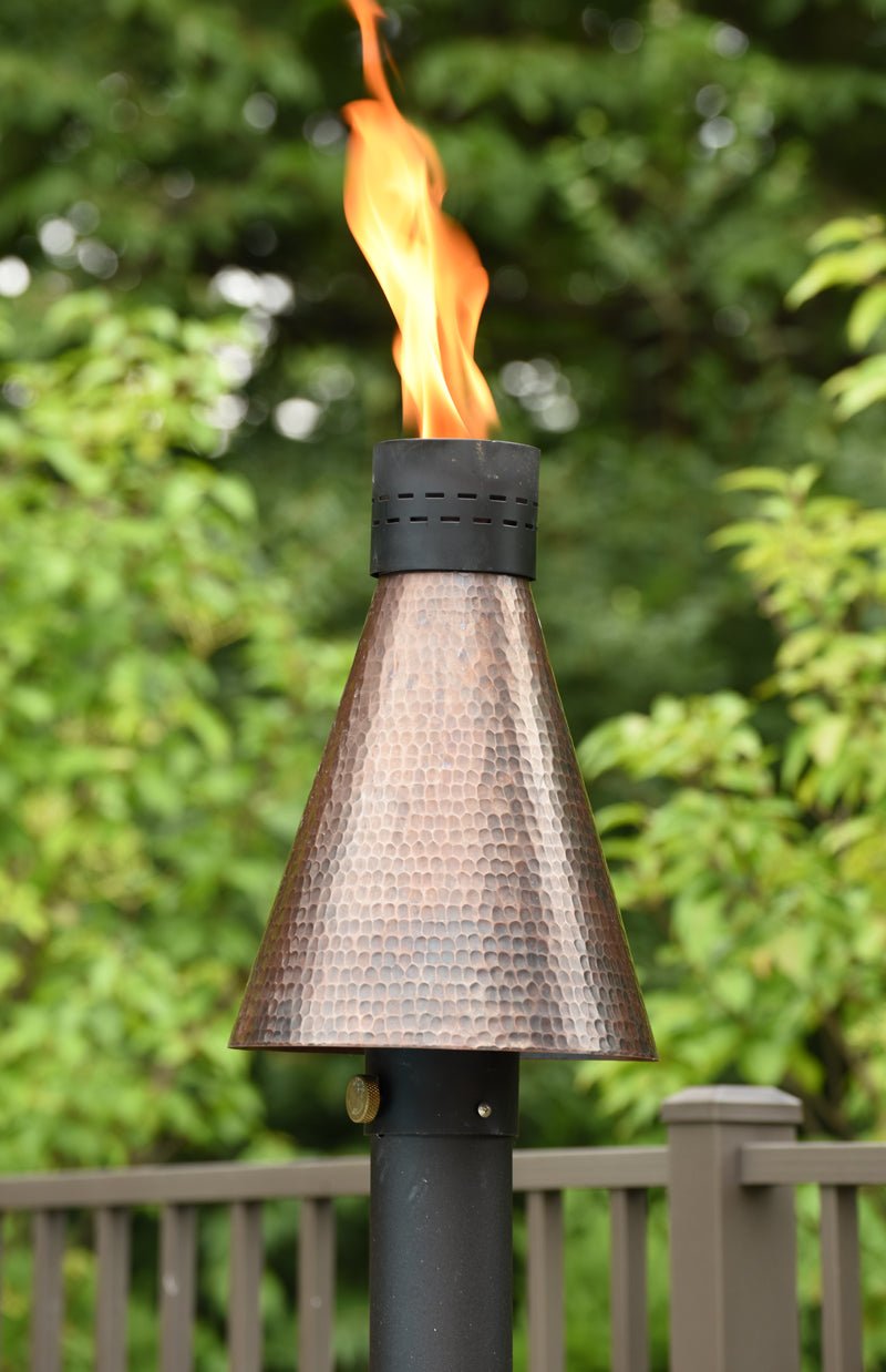 This 40-inch, match-lit torch features a handcrafted solid copper head that naturally patinas over time for a classic, rustic charm. Designed for reliability, it operates without electricity and delivers up to 25,000 BTUs of radiant warmth. The durable #304 stainless steel burner ensures long-lasting performance, while the outdoor powder-coated post withstands harsh weather. The torch includes manual flame adjustment, automatic restart in windy conditions, and a safety shut-off if no flame is detected. Easy to install with included mounting hardware, it’s perfect for patios, walkways, or commercial landscapes—blending elegance with dependable functionality.