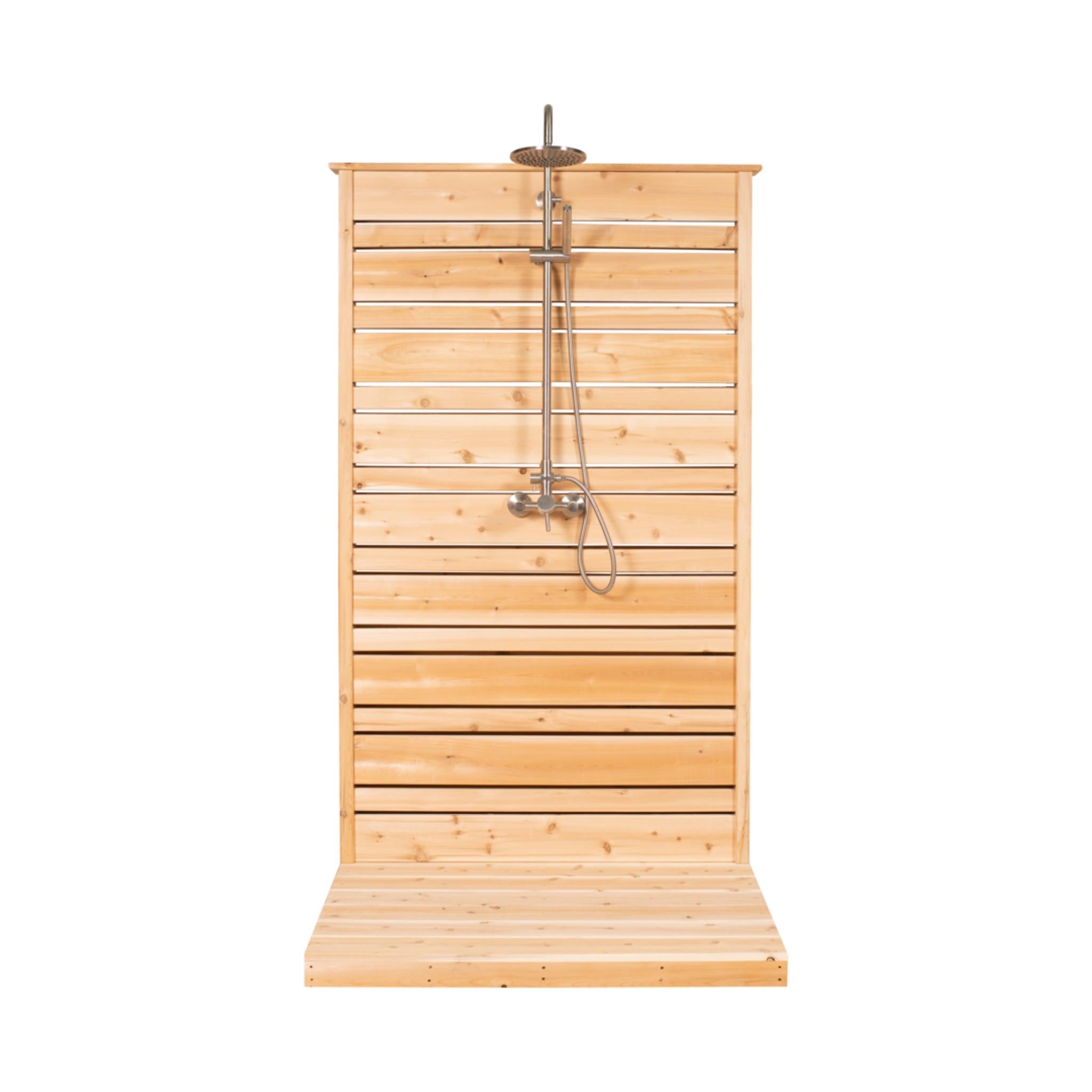 Functional and Stylish: Crafted with a beautiful natural wood finish, the Savannah Standing Shower complements any outdoor decor. Its elegant design not only serves a practical purpose but also enhances the aesthetic appeal of your outdoor space.