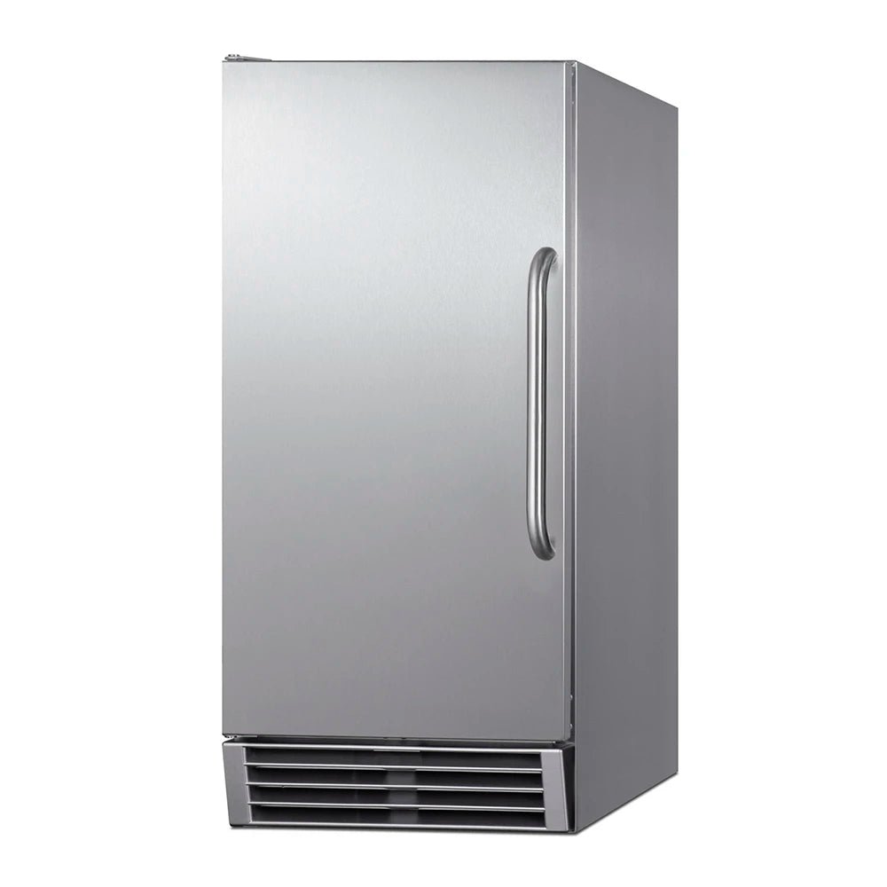 Featuring a durable stainless steel exterior, this unit produces up to 50 lbs. of 7/8” x 7/8” x 7/8” ice cubes per day and stores up to 25 lbs.—ideal for entertaining, hospitality, or breakroom use. Measuring just 14 1/2" wide, it fits snugly under counters and suits both built-in and freestanding installations. With a height of 32 3/8” and depth of 23 1/4”, this ice maker provides high-volume performance in a space-saving footprint. Perfect for those who demand professional-grade ice at home or in commercial environments.