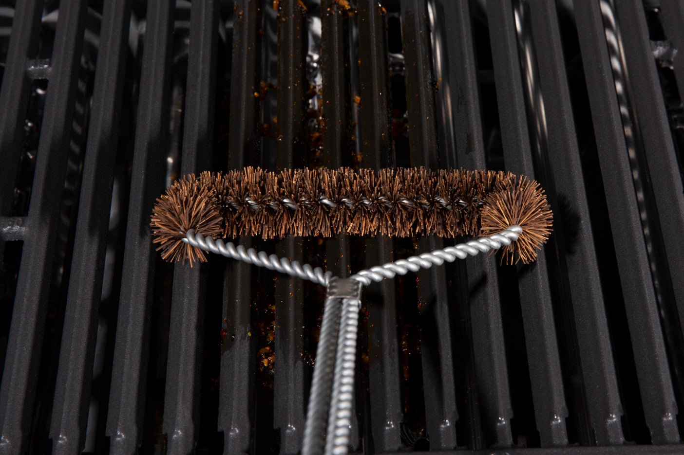 Its twisted bristle design and triple-head structure offer maximum surface contact, while the stiff all-natural palmyra fibers safely dislodge stubborn residue without the risks of metal bristles. Best used on warm grills below 450ºF (232ºC), this brush ensures safe and thorough cleaning. Any dislodged bristles will naturally burn away on the hot grill surface.