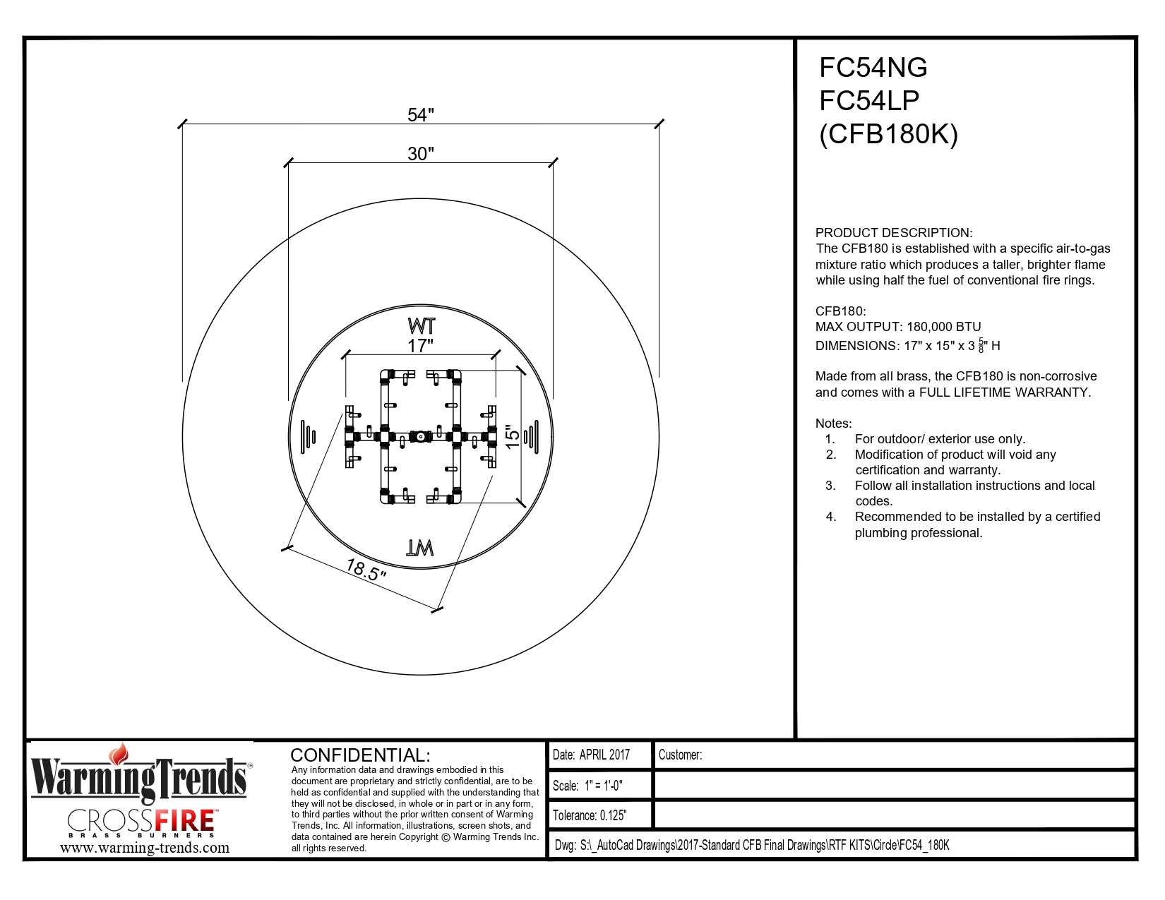 | Burner / BTUs | CFB180 / 180,000 |