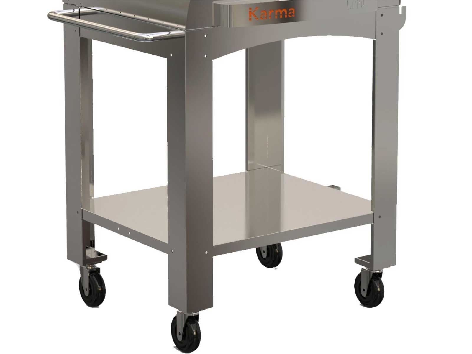 Enhance your outdoor pizza experience with the WPPO Stainless Steel Cart, built exclusively for the Karma 42-Inch Wood-Fired Pizza Oven.