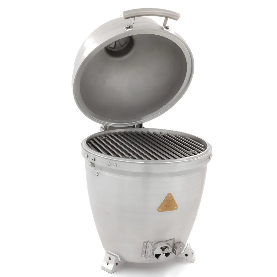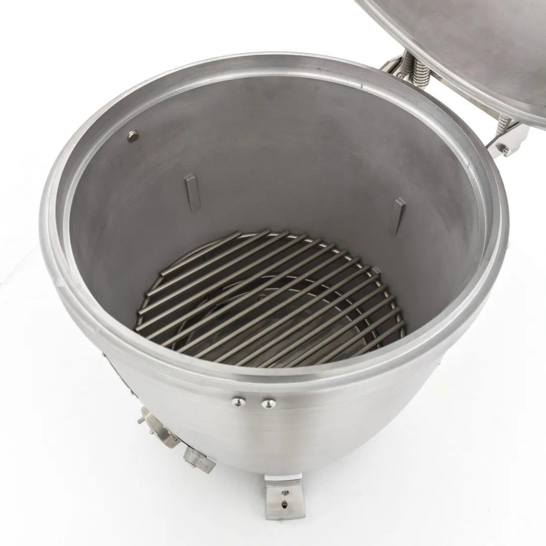 Designed to last a lifetime, this kamado excels in heat retention and temperature control. The non-porous aluminum body resists wear and accommodates any ignition method without absorbing chemicals. With a 20-inch stainless steel cooking surface and hinged access for charcoal and wood additions, it’s built for serious grillers. The innovative lid seal eliminates the need for a gasket, enhancing longevity and performance. Ideal for grilling, smoking, or searing — all backed by a lifetime warranty.