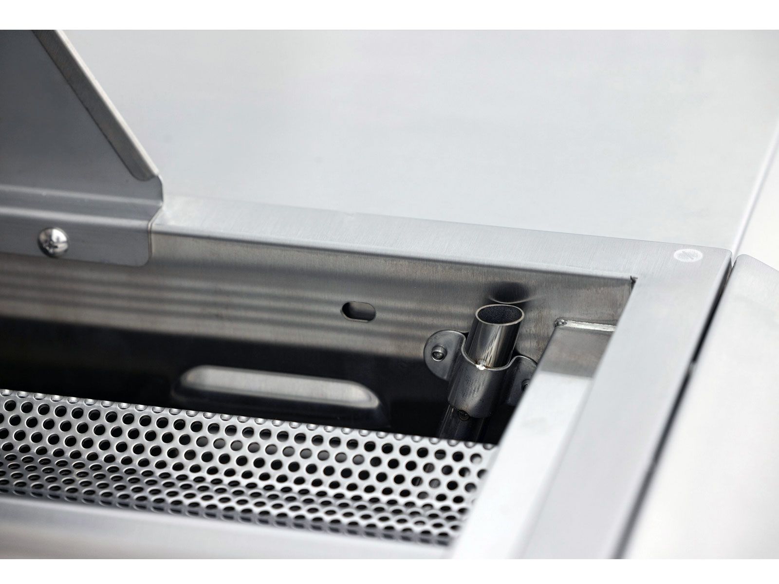 - Large, heavy-duty warming rack with vertical storage latch