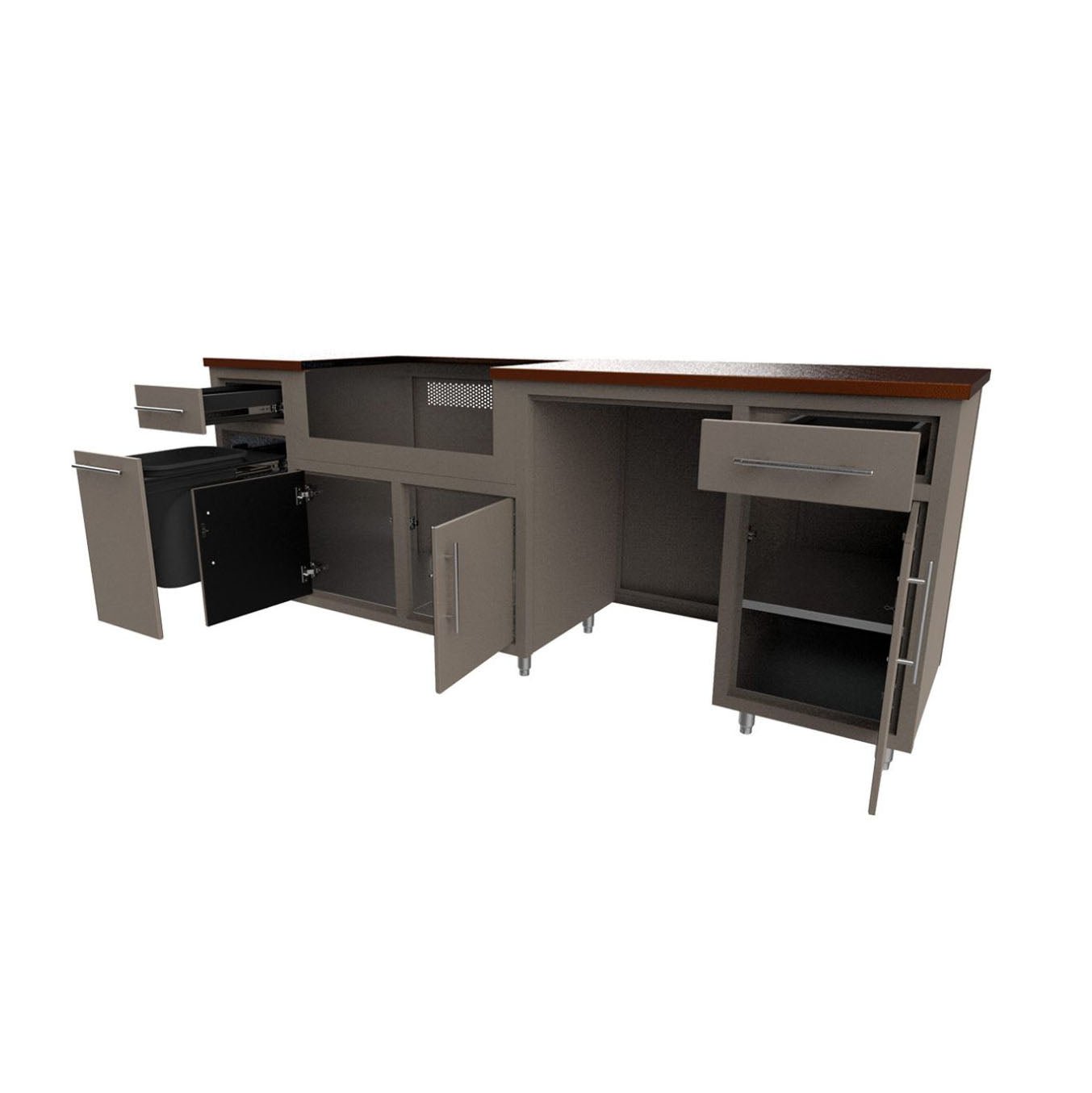 - Included Components: Grill Base, Refrigerator, Drawer, Waste Bin, Countertop